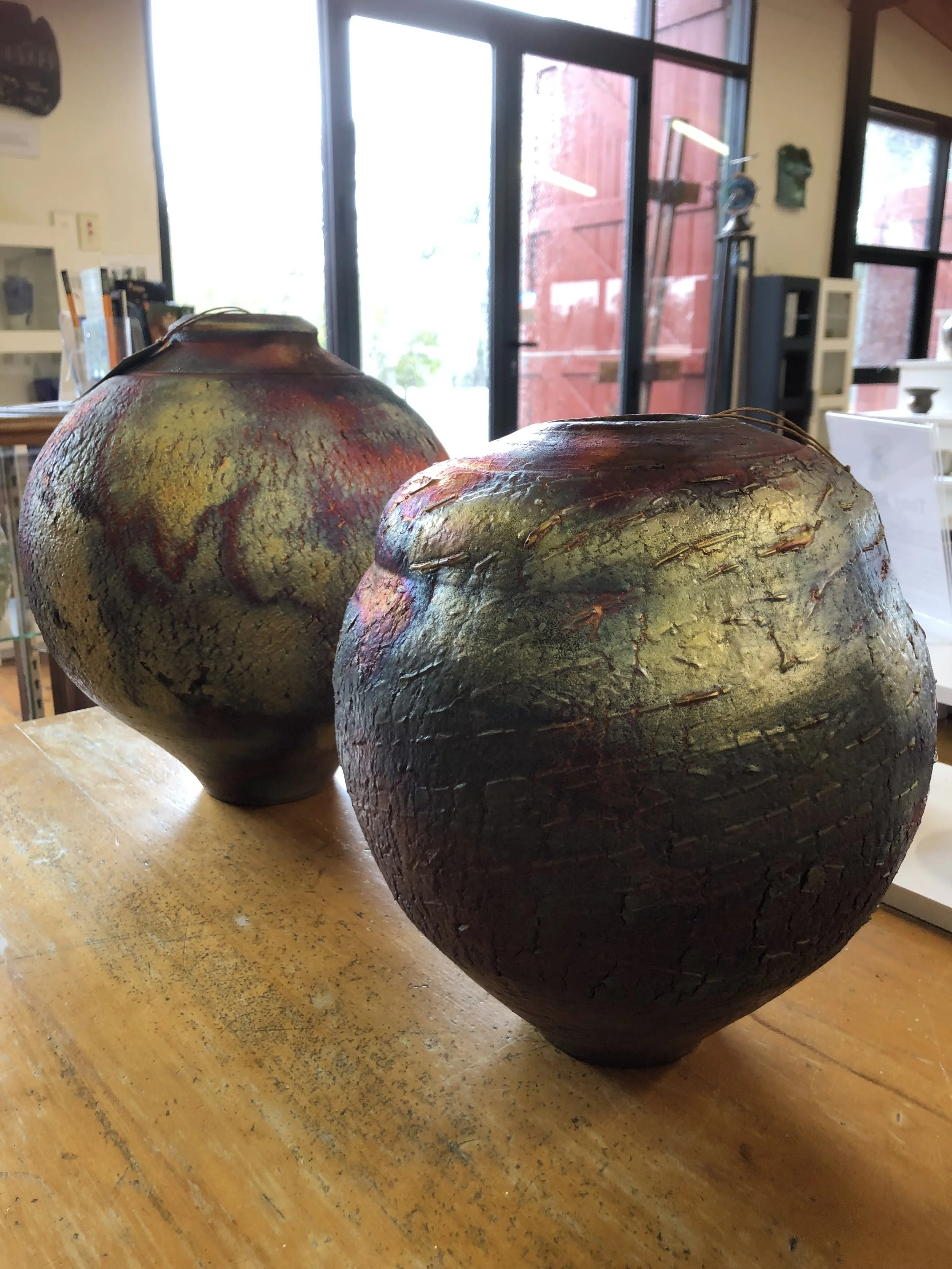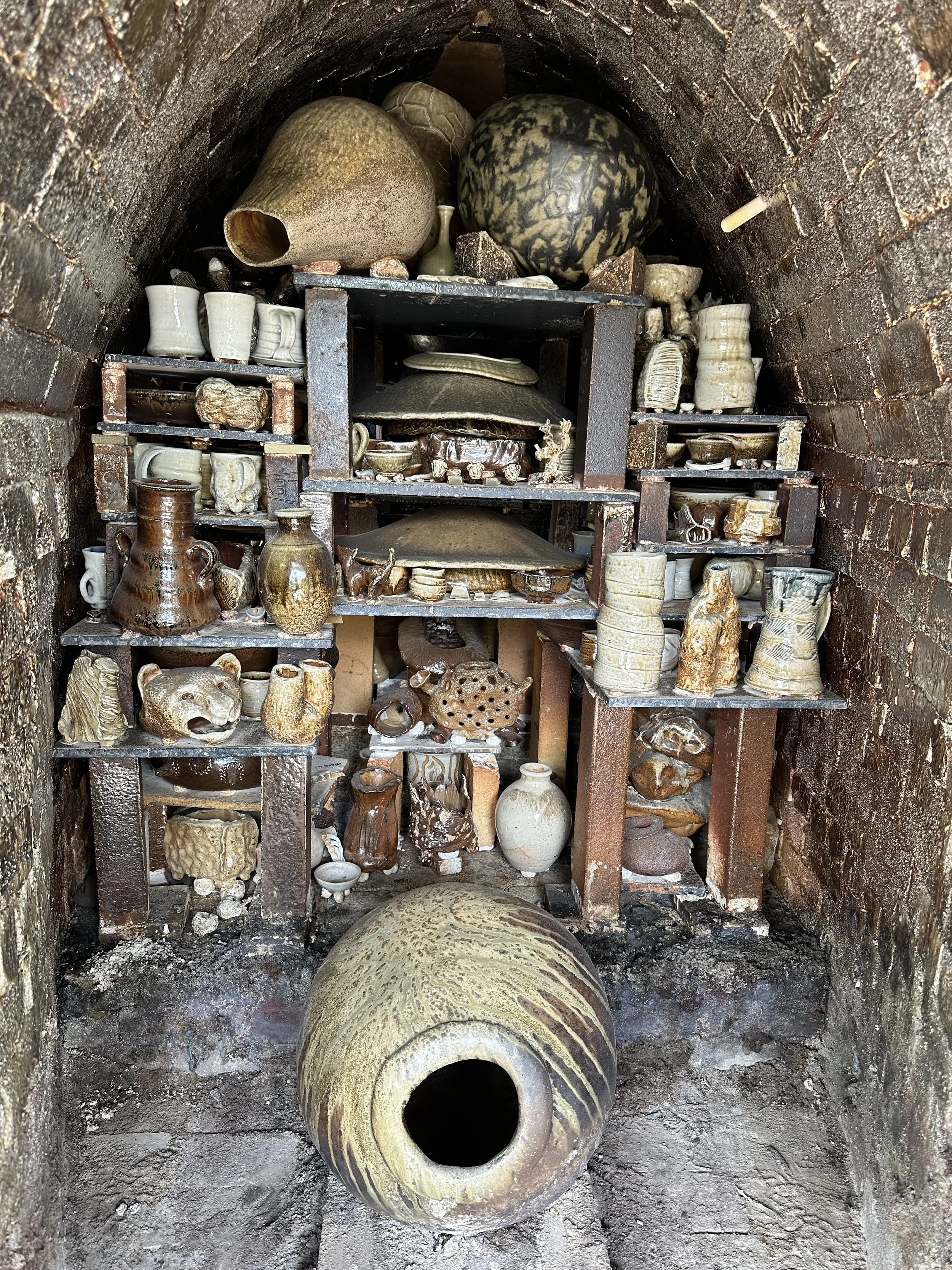 We work as a group, forming teams for working bees and firing shifts. Firing times alter, depending on what forms are being fired and the desired results. Firings usually continue for 2 days straight, including the night. It is the firing process that brings out a comradery among those involved. Knowledge is shared, expanded and experiments are never ending.